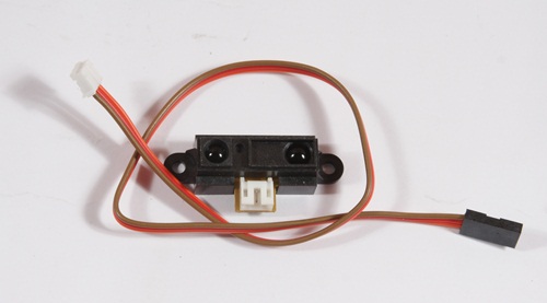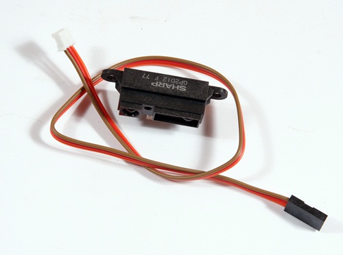 The Sharp GP2D12 IR Range Sensor takes a continuous distance reading and reports the distance as an analog voltage with a distance range of 10cm (~4") to 80cm (~30").